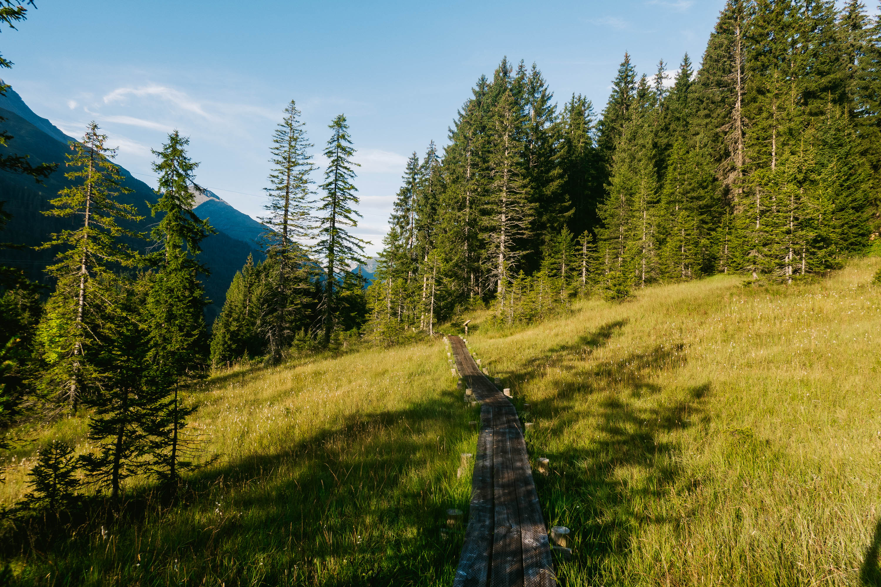 From Redlbahn, follow the path to the and join up with the Rossana trail that follows the river. Eventually you will connect with the Verwallweg, a graded path the continues all the way to Verwalsee. The lake is a stunning color, and it’s a great place to relax and have lunch.