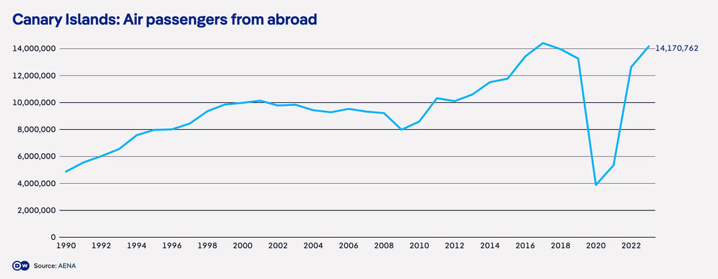 In the Canary Islands, an archipelago off the coast of Spain, locals are protesting the number of tourists. “A total of 13.9 million tourists visited the Canary Islands in 2023, according to local chamber of commerce figures, 13% more than the year before. That is about six times more than the islands’ population of 2.2 million.” (BBC) Part of the concern here is that the tourism dollars aren’t benefiting locals – policies put in place years ago to attract investment favor outside investors and big resorts. The “model is “incredibly generous” to investors, who only pay 4% tax and can send the profits earned in the Canaries back to the firm’s home country” (Sky). Similar protests have been held in popular European holiday destinations like Mallorca and Ibiza. The disparity this creates is significant – one out of three locals are at risk of falling into poverty and nearly a third of all housing on the islands are foreign-owned. Similar protests have been held in popular European holiday destinations like Mallorca and Ibiza.