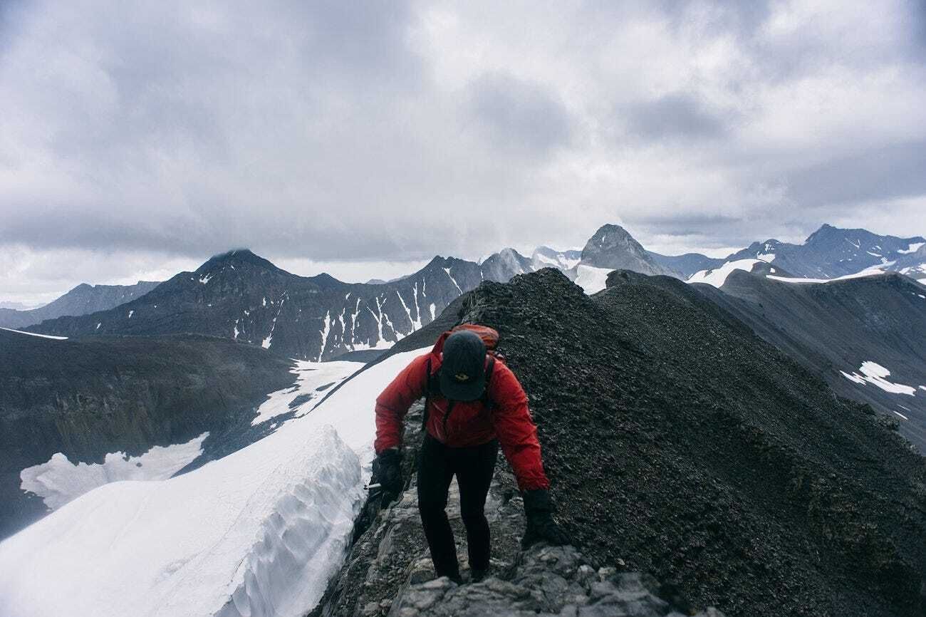 After climbing for 10 miles, 5,000 ft and 2 “detours”, we finally reached the top of Northover Ridge, a several kilometer stretch of ridge line that straddles British Columbia and Alberta. The trail stays right on the ridge, and while the drop on either side might not kill you, it's still a good idea not to slip.