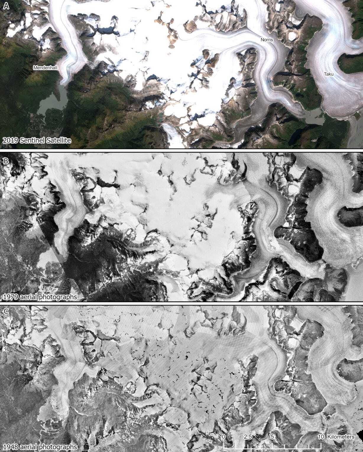 Alaska's Mendenhall Glacier has lost 1.75 miles in length since 1929. The retreat is accelerating, driven by rising global temperatures, shifting snowlines, and decreasing surface reflectivity, or albedo, which causes the glacier to absorb more heat (Davies et al., 2024). According to glaciologists, this trend signals a threshold response to climate warming, where changes become more rapid and less predictable over time.