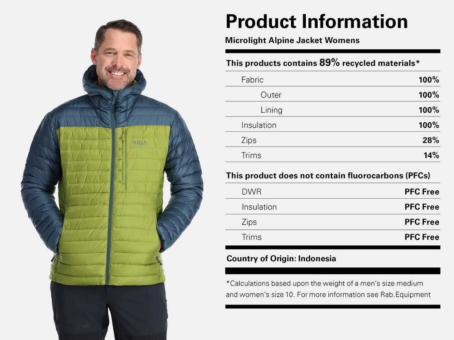 Showing the good and things to be improved. Committing to roll out Material Facts across their entire range (eventually) serves as a forcing function both internally to motivate Rab to increase the sustainability across their entire line as well as highlighting areas where technology partners might represent a limitation in sustainability efforts. Some jackets will be shows as 89% recycled materials and some will be 5%.