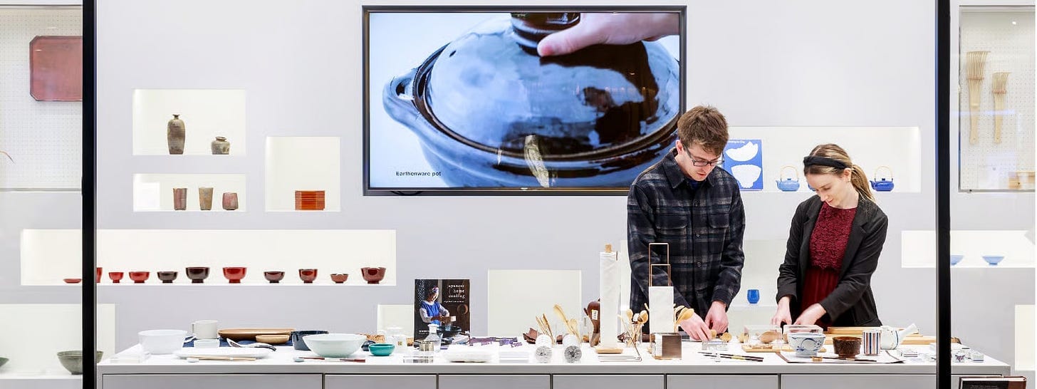 The downstairs exhibitions, which rotate a few times a year and are free, focus on what she called "people, place, and process. They often feature different regions of Japan, the people behind various crafts, and how things are made and put together. The current show features 123 makers and about 2,000 handcrafted objects in glass, wood, ceramic, and bamboo. One maker cuts bamboo from a forest within walking distance of his house. Another digs clay from a hillside near his studio. These aren't the kinds of subjects you'd see in a tourism campaign. There's no easy call to action. No "book now" button at the end. Just an incredibly display of craftsmanship to wander through (although I think I would have liked a few QR codes to learn more about specific artisans).