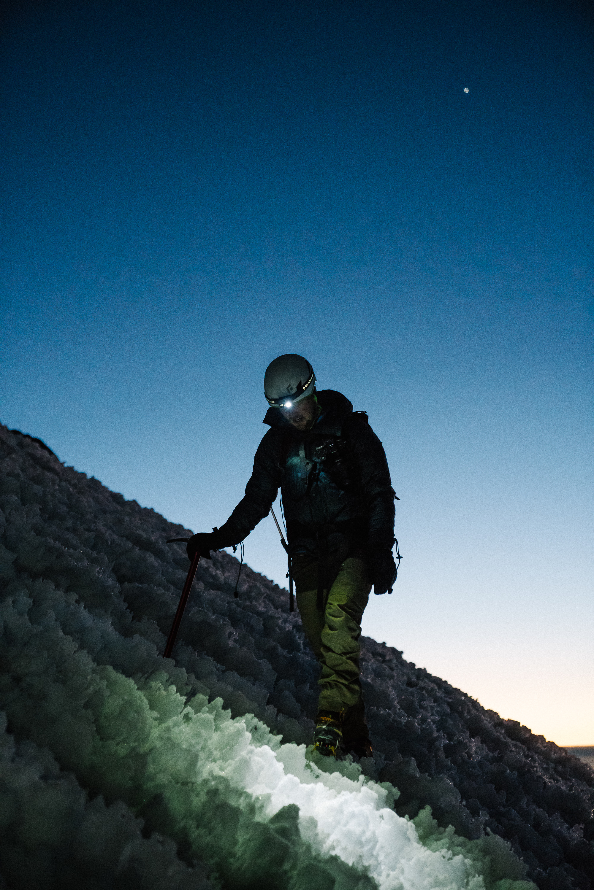We left the shelter around 2:30am to start our ascent. The first part of the climb involves steep scree fields and a bit of route-finding in the dark before reaching snow at higher elevations. I had some stomach issues, which I was pretty confident weren’t altitude sickness related and attributed to my backpacking meal the night before. After a short break (and emptying my stomach), I felt significantly better and was able to continue. Still, not my strongest showing.