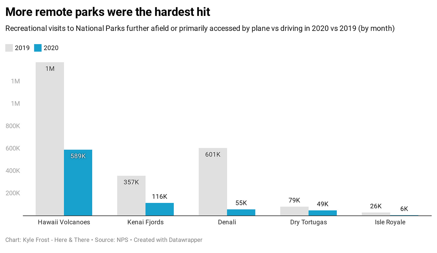 “Fly to” destinations and more remote parks saw large decreases in visitation