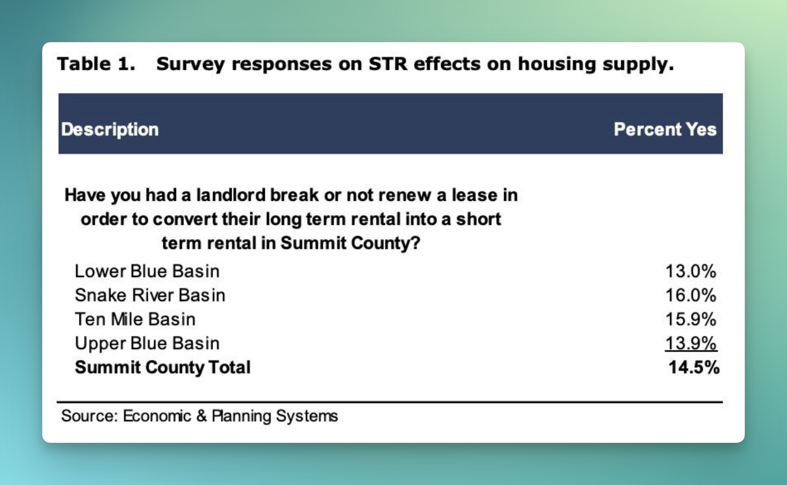 In Breckenridge, 14.5% of renters were forced out due to owners converting the property to an STR (2021 Memorandum).