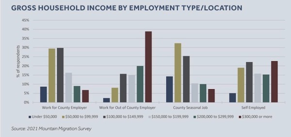 Geographically and supply constrained mountain towns aren’t going to magically become “affordable”. These are still incredibly desirable places to live and real estate prices are likely to continue to reflect that demand. The 2021 Mountain Migration Report found that “the majority of full-time residents employed locally cannot successfully compete for housing when escalated demand and prices are driven by households earning much higher incomes.”