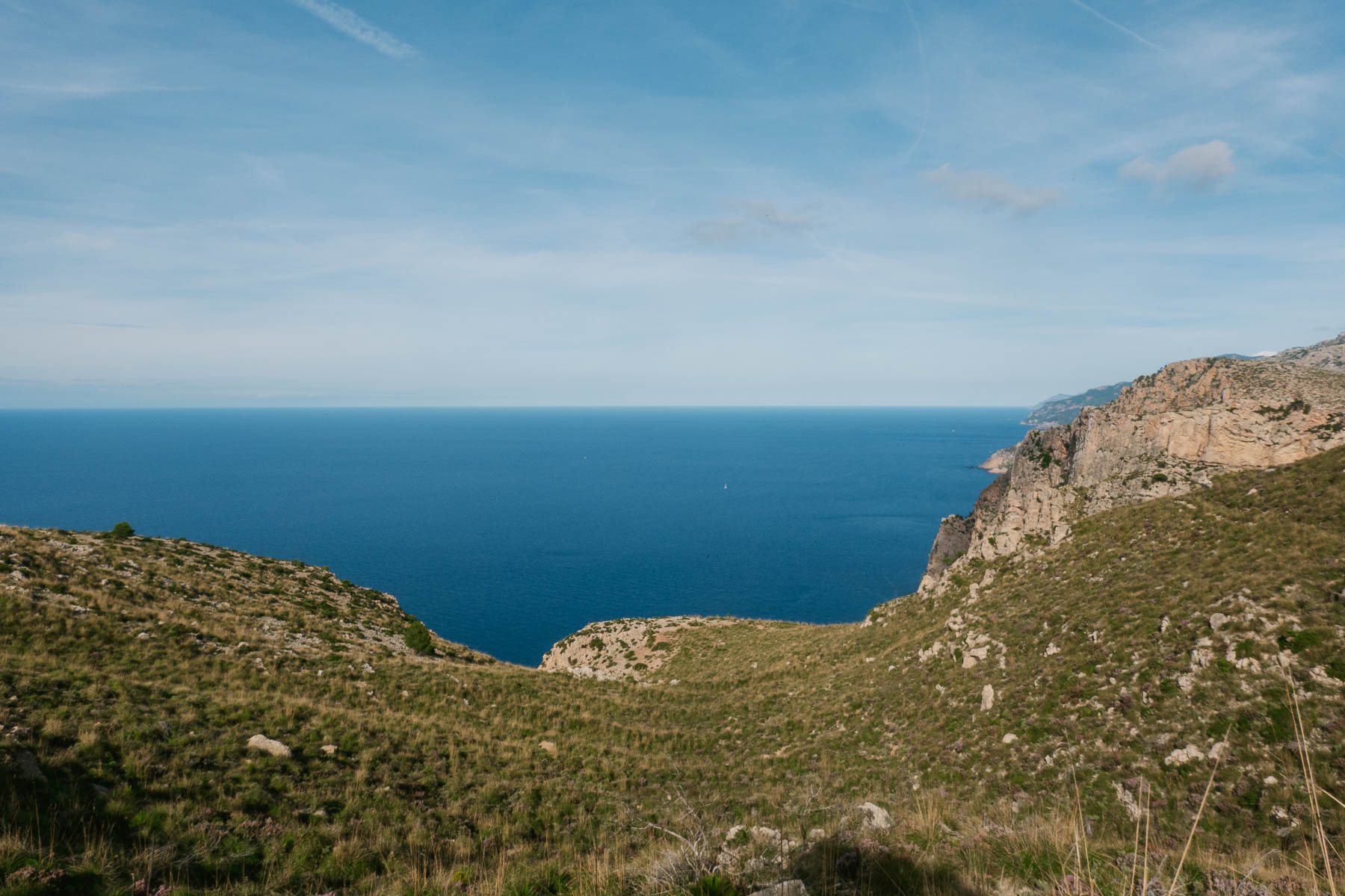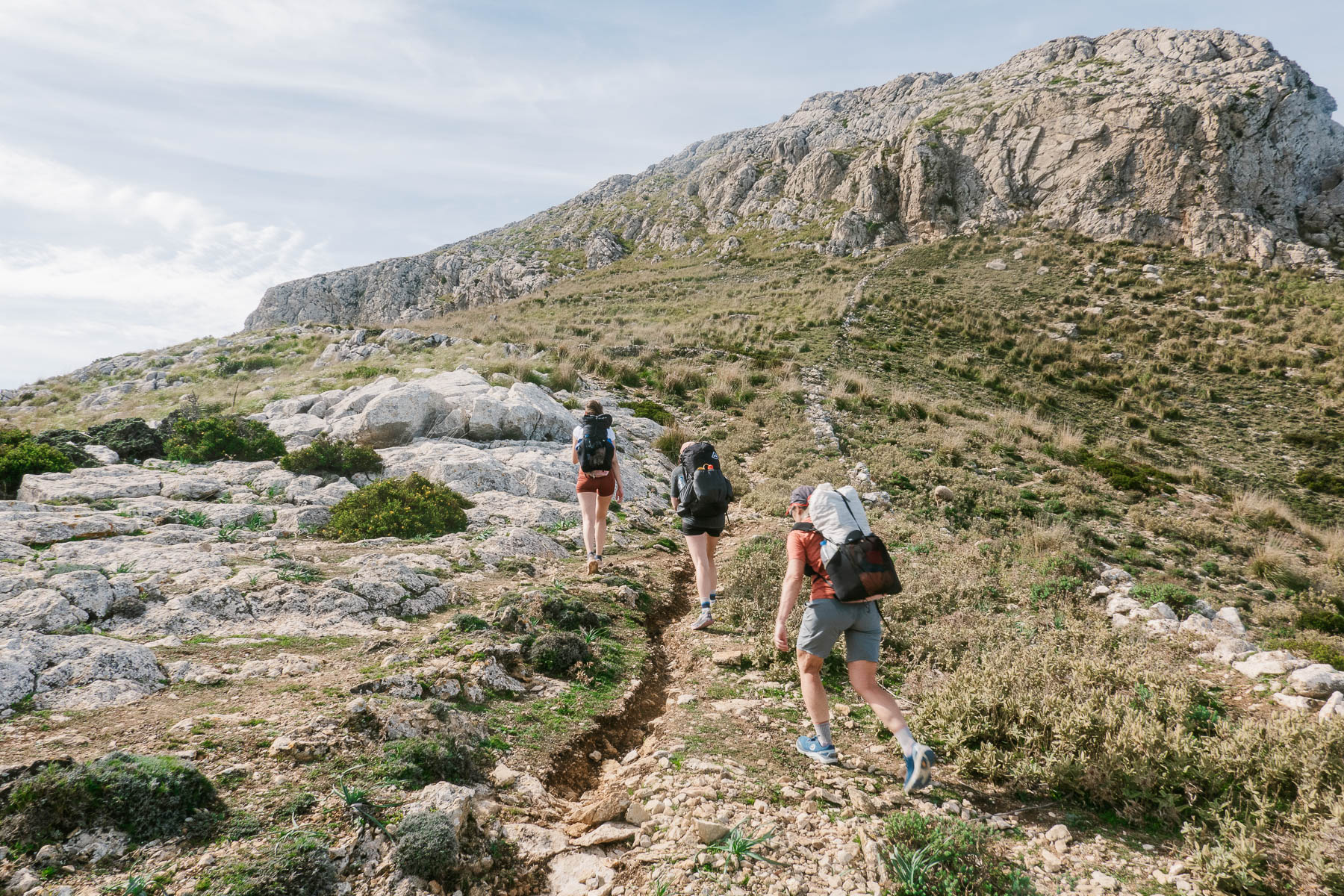 It’s 75 degrees, sunny, and I’m standing on the top of a pass admiring a sweeping mountain landscape. I’ve spent the last two hours on a quad-busting ascent, climbing 3,000 ft up a winding stone trail, to meet my friends coming from the opposite direction. I’m a fit person, but the climb definitely took me by surprise. I’ll be honest, when buying a last minute flight to join friends for a few days in Mallorca, I wasn’t thinking about mountains, tough climbs, and rugged trails. But here, with this view, I’m pleasantly surprised and excited for the next few days of hiking.