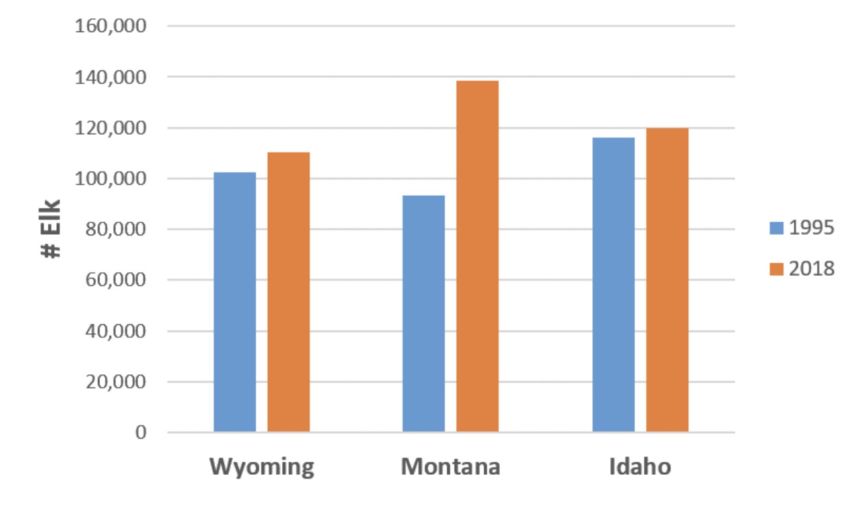Based on Colorado State University’s Center of Human-Carnivore Coexistence data, there was no overall decline in post-hunt elk populations in states where wolves were reintroduced between 1995 and 2018.