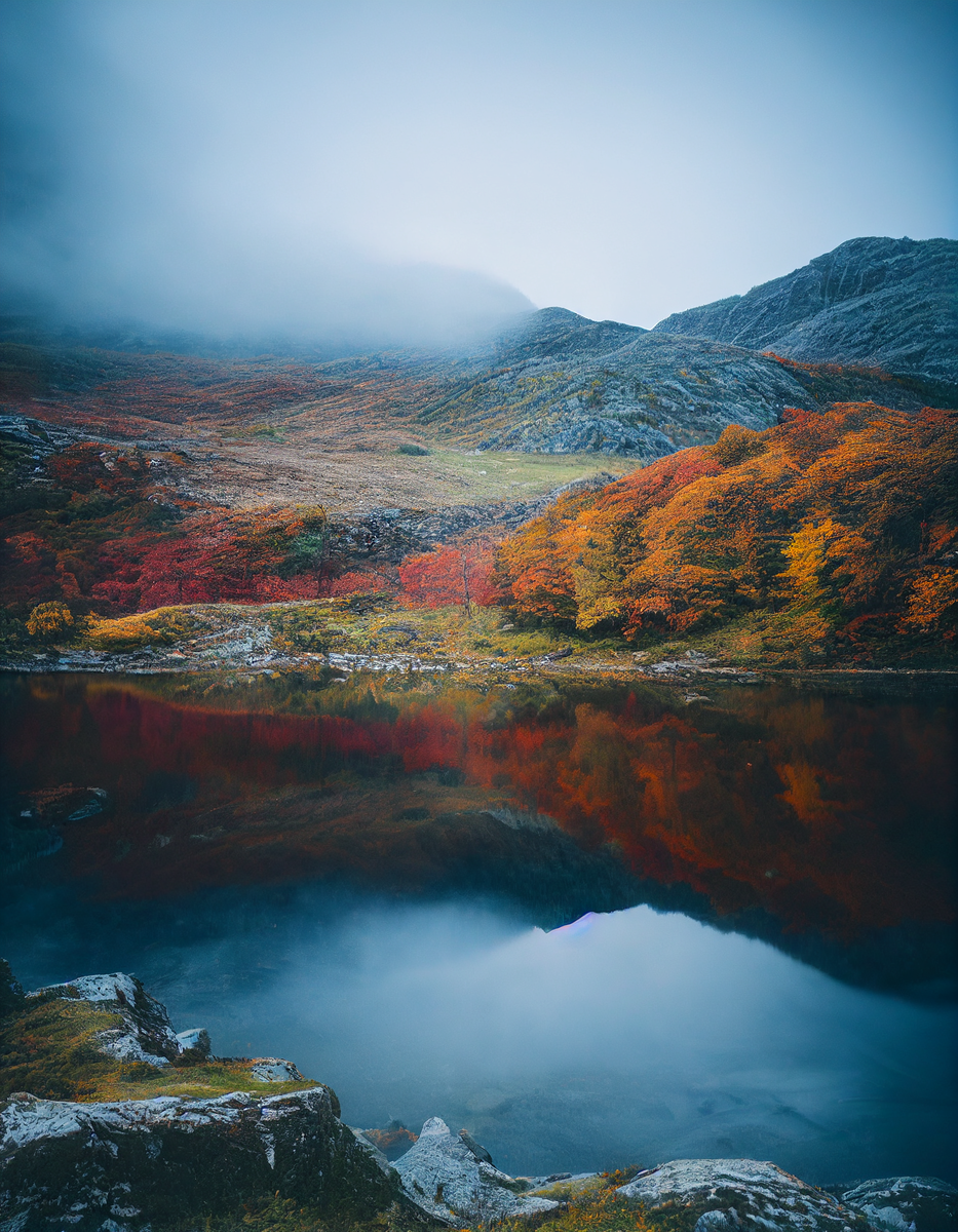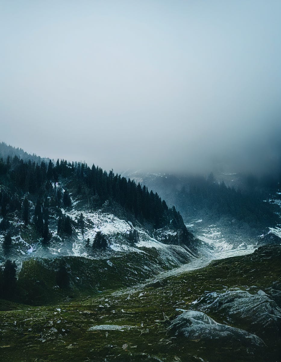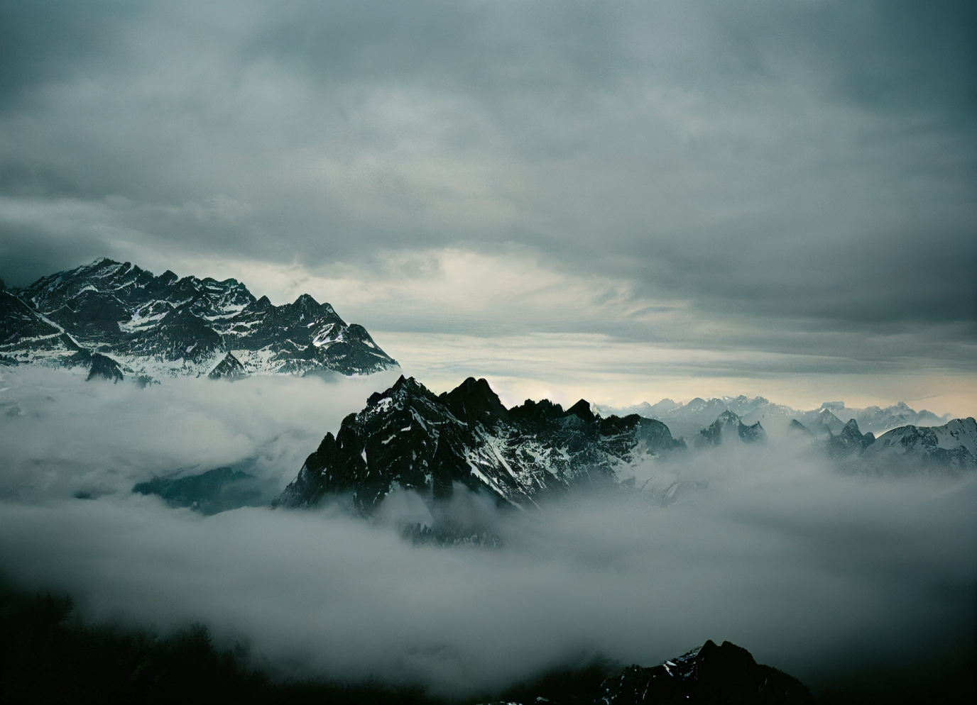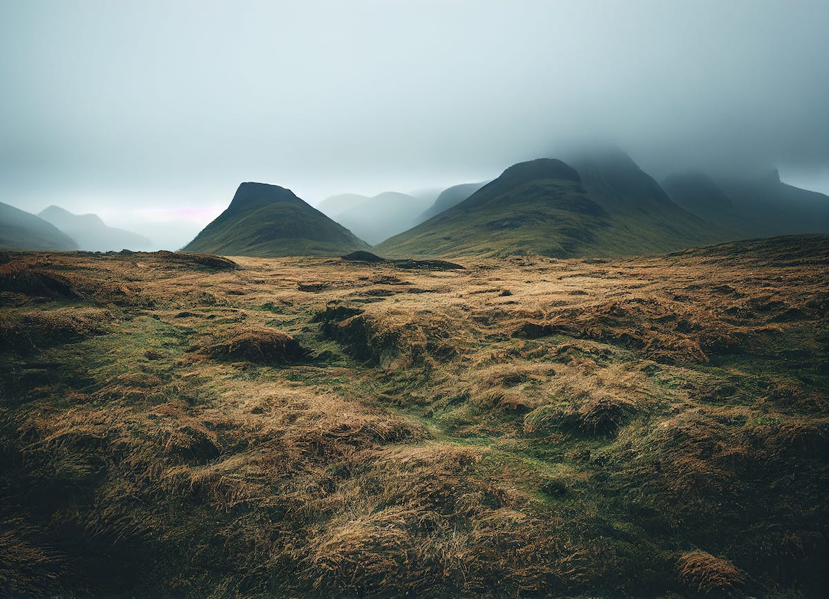 It’s quite good at landscapes. Landscape photography already has elements that create a lot of visual noise, like mountainsides, rocks, snow, grass, and trees. Because these elements already tend to blend together, they’re easier to fake. Incorporating elements like fog, haze, and clouds also makes images naturally more obscure and harder to identify as generative (as seen in the “Scottish” landscape below). Sometimes it takes a bit of fiddling with the prompt to dial them back to ‘believable’, as they often bias towards creating more “fantastical” mountain landscapes.